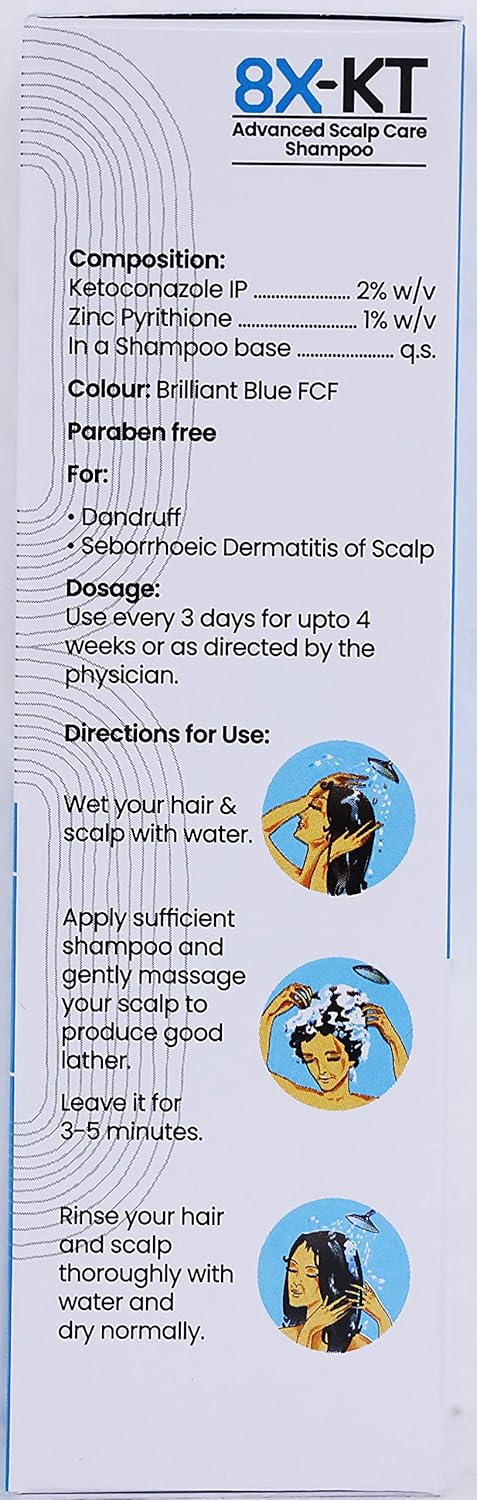 This medicated shampoo is formulated to address dandruff and seborrheic dermatitis by targeting the underlying fungal causes. It contains 2% ketoconazole and 1% zinc pyrithione, which work together to inhibit fungal growth and reduce scalp flaking, itching, and irritation. The shampoo's gentle cleansing action helps maintain the scalp's natural moisture balance, promoting a healthier scalp environment. For optimal results, apply the shampoo to wet hair, massage into the scalp, leave it on for 3 to 5 minutes, and rinse thoroughly. Regular use as directed can lead to a noticeable reduction in dandruff and improved scalp comfort. This product is intended for external use only and should be stored in a cool, dry place away from direct sunlight. If irritation or adverse reactions occur, discontinue use and consult a healthcare professional. Always follow the prescribed dosage and duration as advised by your healthcare provider.