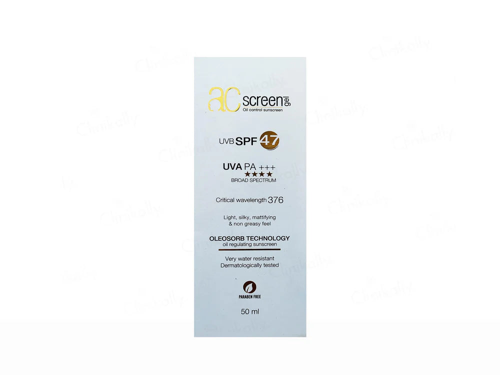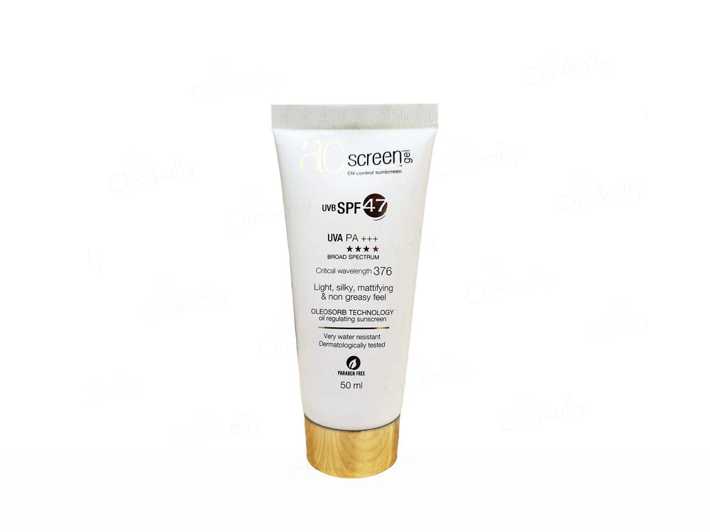 Acscreen Oil Control Sunscreen Gel SPF 47 provides high-level broad-spectrum protection against UVA and UVB rays while controlling excess oil and shine. Formulated with mattifying agents and soothing ingredients, this lightweight gel absorbs quickly, leaving a non-greasy, matte finish. Ideal for oily, combination and acne-prone skin, this sunscreen gel helps prevent sunburn, premature aging, and sun-induced skin damage. Enriched with Tea Tree Oil and Vitamin E Acetate, this sunscreen is perfect for daily use.