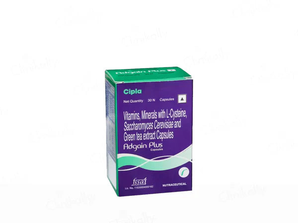 Adgain Plus Capsule is a dietary supplement designed to treat hair loss and improve hair health caused by stress and structural changes. Enriched with L-Cysteine, Brewer's Yeast, and Biotin, they protect against sun damage, reduce greying, and strengthen hair. Suitable for addressing hair fall, retarded growth, and damaged hair, Adgain Plus Capsule promote resilient, healthy, and vibrant hair.