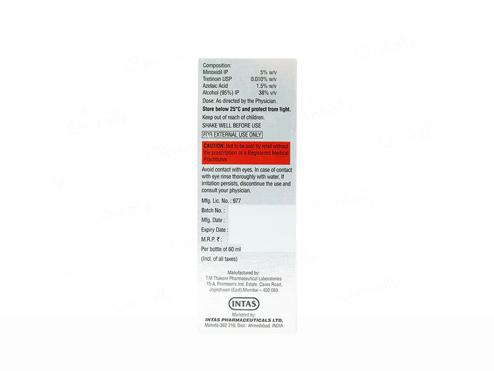 Aloatm 5% Topical Solution is a trusted remedy for hair loss and baldness. Featuring Minoxidil, Azelaic Acid and Tretinoin, it effectively promotes hair regrowth, especially in men suffering from male pattern baldness. This easy-to-apply solution revitalizes hair follicles, increasing hair density and thickness. It's a reliable choice for regaining a fuller, more youthful head of hair and boosting self-confidence.