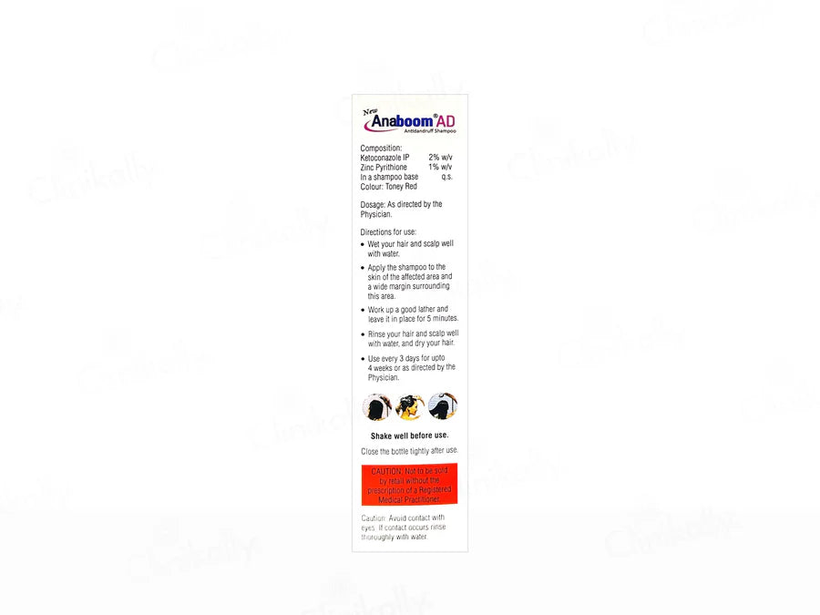 Anaboom AD Anti-Dandruff Shampoo is a dermatologist-formulated solution featuring Ketoconazole 2% and Zinc Pyrithione 1% to effectively control dandruff, flakes, and scalp irritation. Enriched with Vitamin E, D-Panthenol, and Ichthammol, this shampoo soothes itchiness while conditioning the scalp and hair. This paraben-free formula helps reduce redness, restore scalp balance, and prevent recurrence of dandruff with regular use. Ideal for oily, flaky scalps, Anaboom AD offers a therapeutic cleanse with visible relief and improved hair texture.