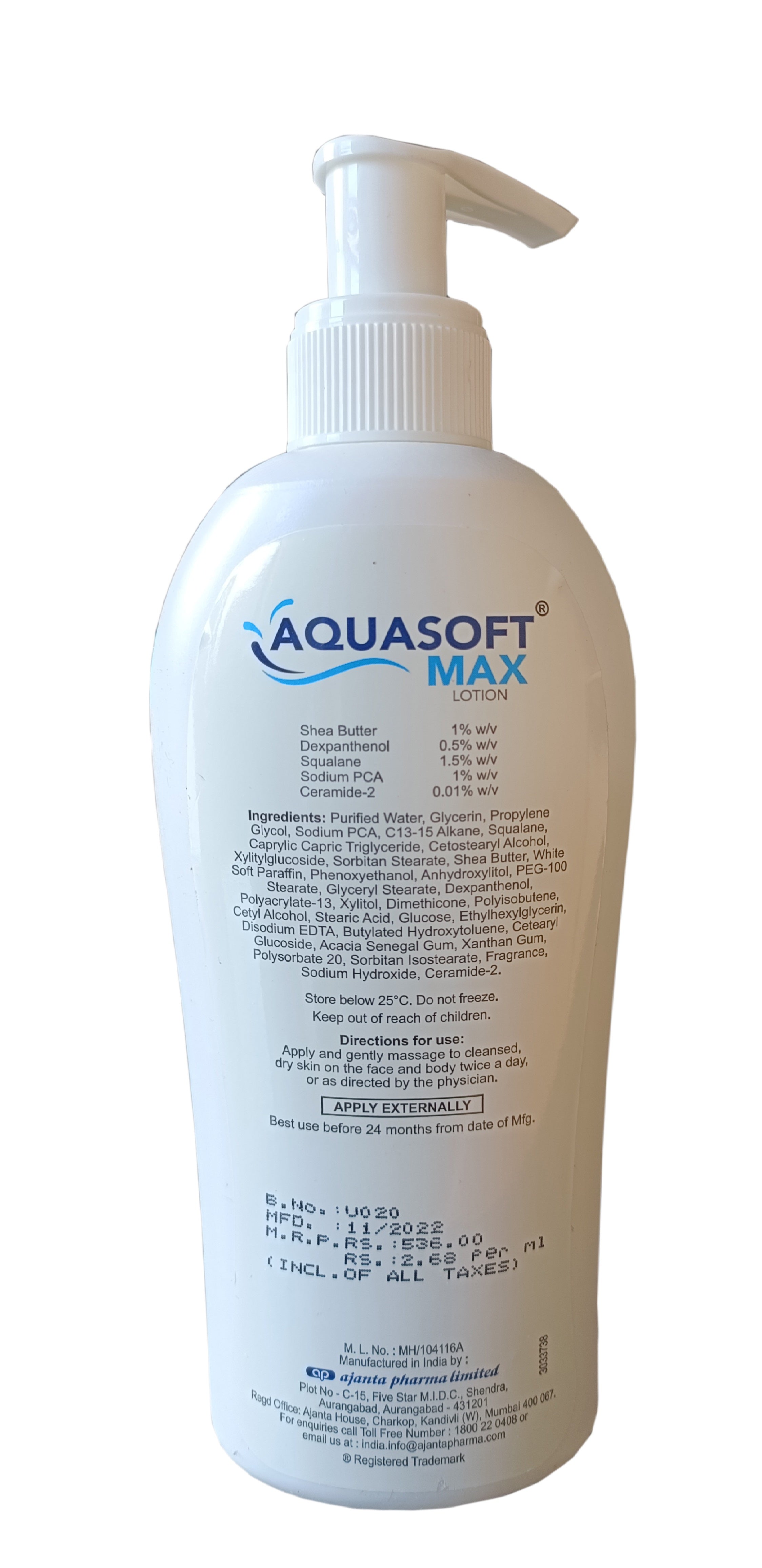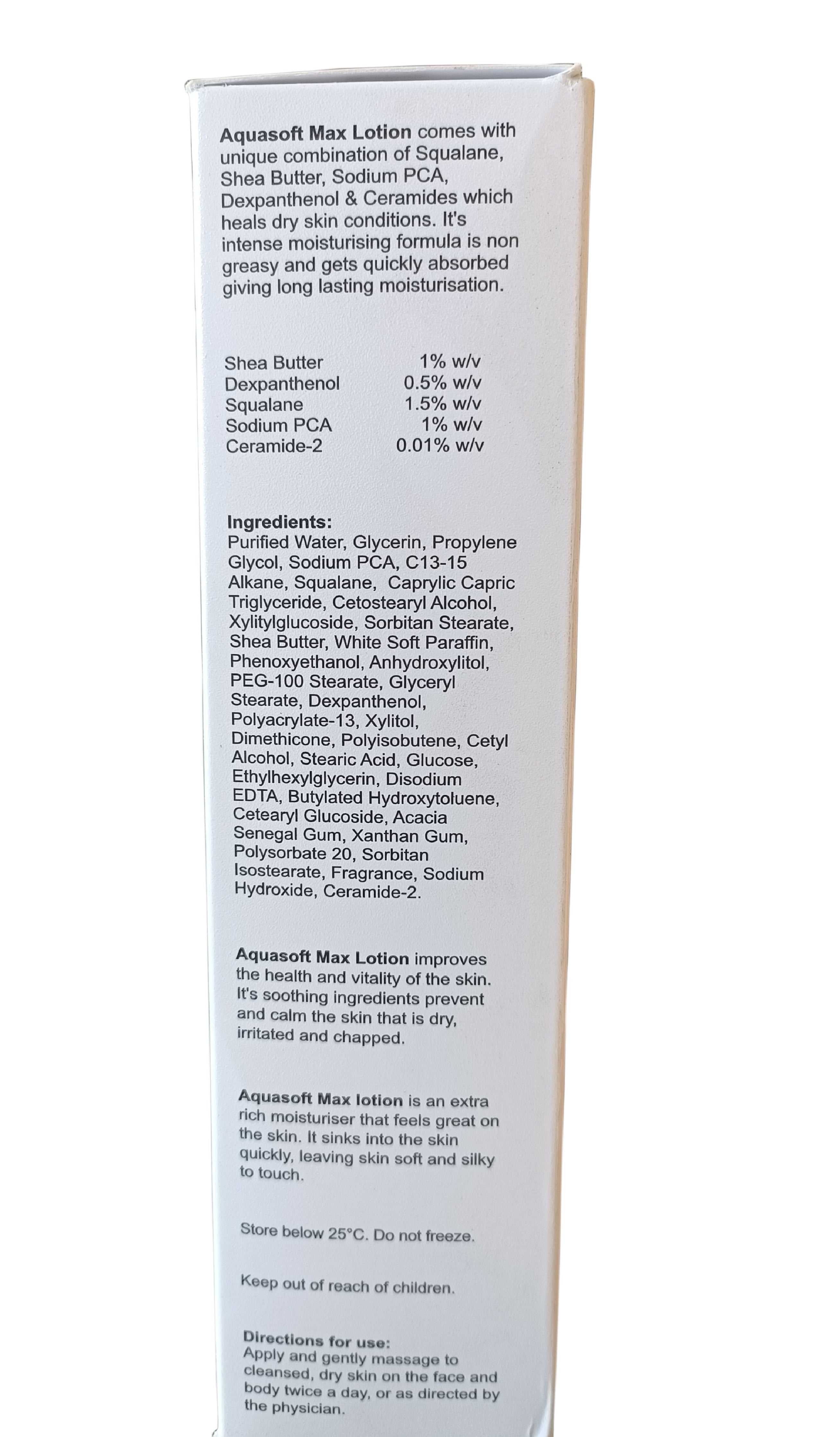 Aquasoft Max Intense Moisturising Lotion is a moisturising lotion with ceramide that aims to provide intense hydration and nourishment to the skin. The lotion is said to make the skin softer, enhance vitality, and improve the overall health of the skin. Aquasoft Max Intense Moisturising Lotion is formulated to combat dryness and relieve dry skin conditions.