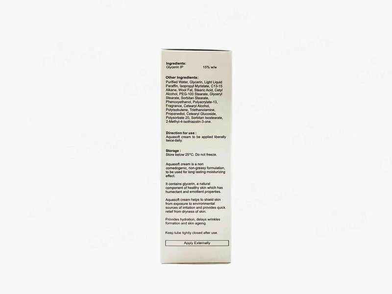 Aquasoft Moisturizing Cream is a rich, dermatologist-recommended emollient formulated to provide intense hydration and skin barrier repair for dry, rough, and sensitive skin. It combines powerful moisturizers like Liquid Paraffin, White Soft Paraffin, and Aloe Vera to deeply nourish and soothe the skin. Ideal for conditions like xerosis (dry skin), eczema, and winter dryness, Aquasoft Cream keeps your skin soft, supple, and healthy-looking with regular use.