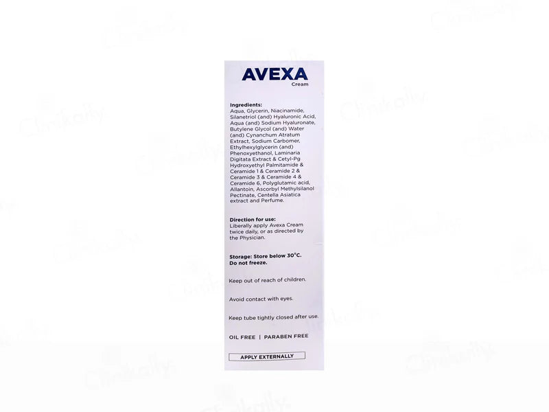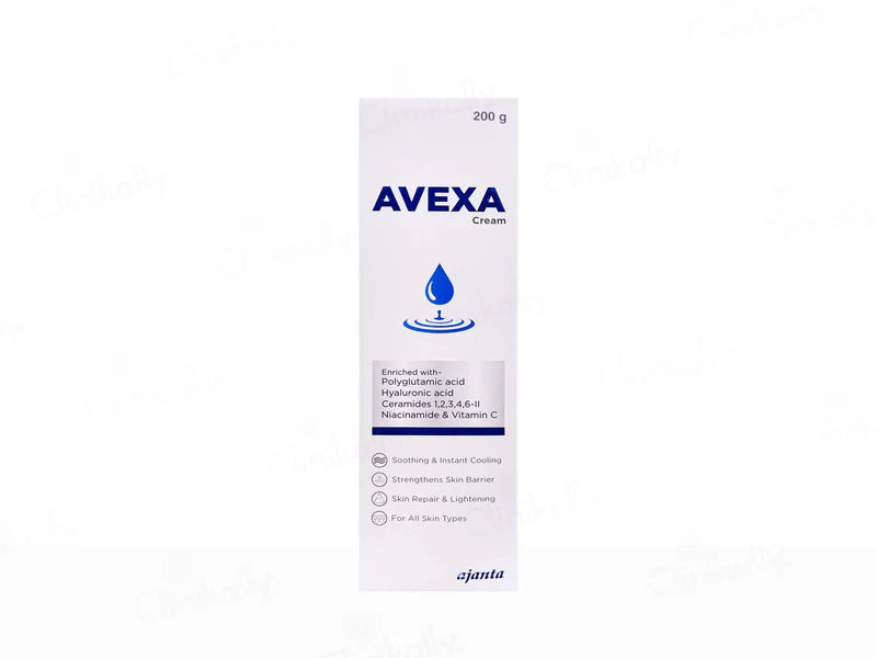 Avexa Cream is a dermatologist-formulated skin repair and lightening solution enriched with Polyglutamic Acid, Hyaluronic Acid, Niacinamide, Vitamin C, and multiple Ceramides (1, 2, 3, 4, 6-II). Designed to soothe irritation and offer instant cooling, it strengthens the skin barrier and supports intense hydration. With Centella Asiatica, Allantoin, and Laminaria Digitata Extract, this cream visibly improves skin texture and brightness. Its gentle, non-comedogenic formula makes it suitable for daily use on all skin types.