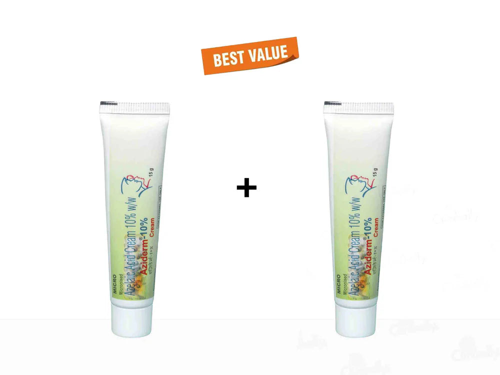 Aziderm 10% Cream is a dermatologist-recommended treatment for acne, pigmentation, and rosacea. Formulated with 10% micronized azelaic acid, it helps unclog pores, reduce inflammation, and fade acne marks and dark spots. This antibacterial and anti-inflammatory cream targets excess oil production while brightening uneven skin tone. Ideal for oily and acne-prone skin, Aziderm 10% visibly improves skin texture and clarity with regular use. Its lightweight, non-comedogenic formula makes it perfect for daily use in active acne and hyperpigmentation treatment routines.