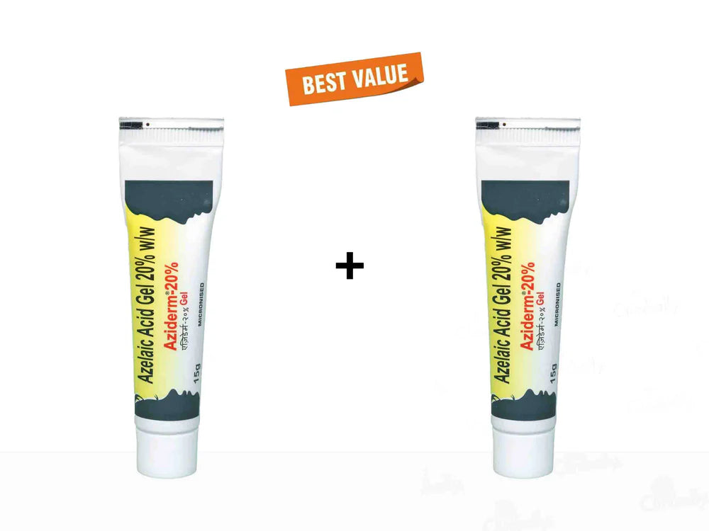 Aziderm 20% Gel containing Azelaic acid, falls under the category of Dicarboxylic acids. This cream is effective in treating common acne (acne vulgaris) by unclogging hair follicles, reducing whiteheads, blackheads, and pimples. Additionally, it addresses mild to moderate papulopustular rosacea, alleviating symptoms like redness, pus-filled bumps, and visible blood vessels on the face. It offers a versatile solution for these skin conditions, promoting clearer and healthier skin.