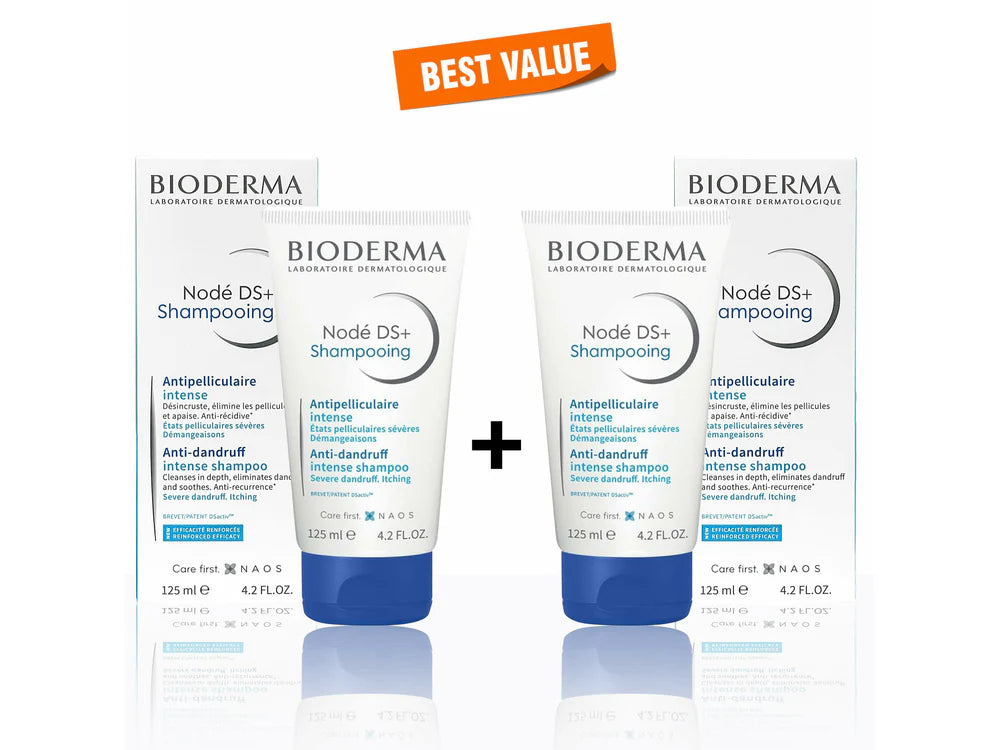 Bioderma Nodé DS+ Shampoo is an advanced formula designed to combat severe dandruff. With the DSactive™ patented complex, it effectively limits the proliferation of Malassezia yeasts and prevents recurrences by minimizing sebum secretion. Enriched with powerful kerato-regulating and soothing agents, it clears dandruff, relieves itchy scalps, and enhances the tolerance threshold of sensitized scalps.