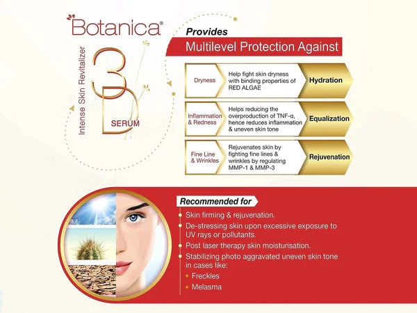 Botanica 3D Serum is a revolutionary skincare solution designed to rejuvenate and revitalize the skin. Infused with powerful botanical extracts, hyaluronic acid, and peptides, this serum targets fine lines, wrinkles, and uneven skin tone. It deeply hydrates, firms, and brightens the complexion, promoting a youthful and radiant appearance. Suitable for all skin types, Botanica 3D Serum provides multi-dimensional skincare benefits, ensuring your skin looks and feels its best with regular use.