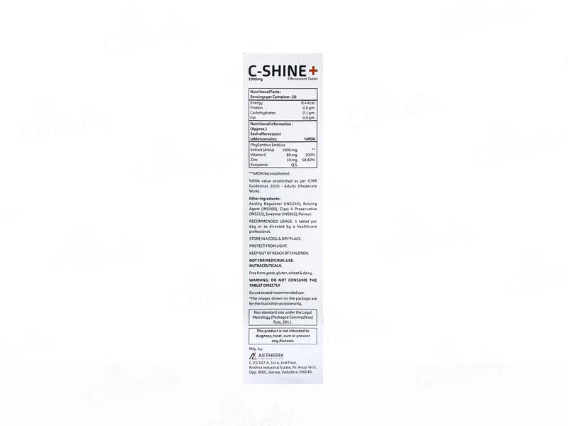 C-Shine+ 1000mg Effervescent Tablet in Orange Flavour is a delicious and convenient way to boost your daily vitamin C intake. Each effervescent tablet delivers 1000mg of vitamin C, supporting immune health, skin radiance, and overall vitality. The refreshing orange flavor makes it enjoyable to consume, while the effervescent formula ensures quick absorption. Ideal for those with busy lifestyles, this supplement helps to maintain optimal health and well-being with regular use.