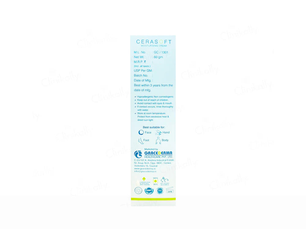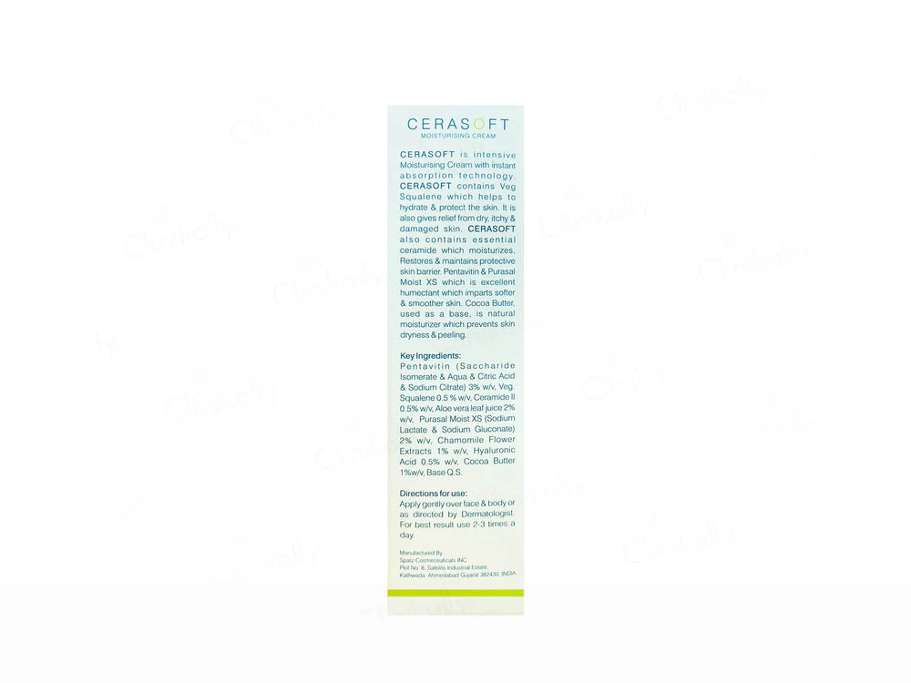 Cerasoft Moisturising Cream is an intensive moisturizer designed for normal to dry skin, offering immediate hydration and relief. It contains a blend of powerful ingredients such as Veg Squalene, Ceramide II, Pentavitin, and Purasal Moist XS, which work together to hydrate, protect, and restore the skin’s natural moisture barrier. With additional soothing elements like Aloe Vera and Chamomile Extracts, this cream alleviates dryness, itchiness, and irritation while leaving the skin soft, smooth, and nourished. Ideal for daily use, it promotes healthier, more radiant skin.