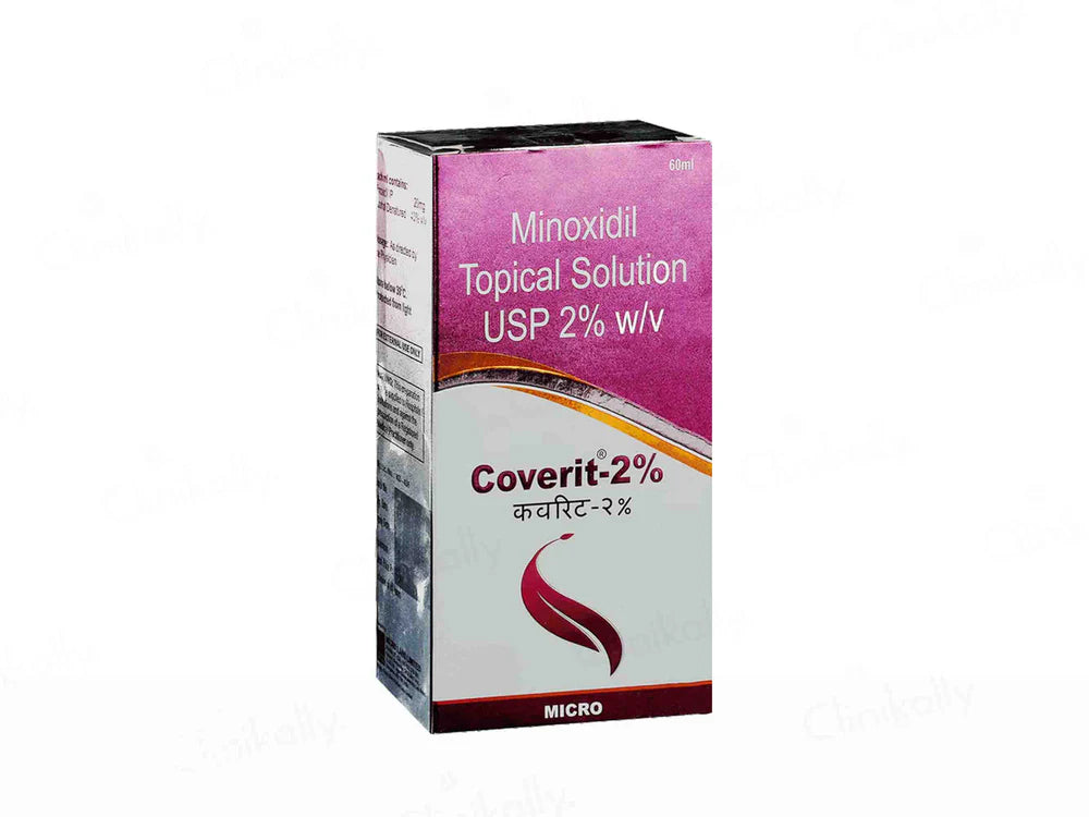 Coverit-2% Topical Solution is a medication containing the active ingredient Minoxidil. It is commonly used to treat hair loss, particularly in cases of male pattern baldness and female pattern hair loss. This easy-to-apply solution revitalizes hair follicles, increasing hair density and thickness. It's a reliable choice for regaining a fuller, more youthful head of hair and boosting self-confidence.