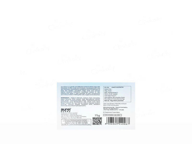 Ducobact Antimicrobial Soap is a powerful cleansing bar formulated to eliminate harmful bacteria and prevent infections. Enriched with antimicrobial agents, this soap effectively removes impurities, dirt, and excess oil while providing long-lasting protection against germs. Its gentle yet effective formula is suitable for daily use, ensuring your skin remains clean, healthy, and protected. Ideal for all skin types, Ducobact Antimicrobial Soap leaves the skin feeling refreshed and hygienic, making it perfect for maintaining personal hygiene.