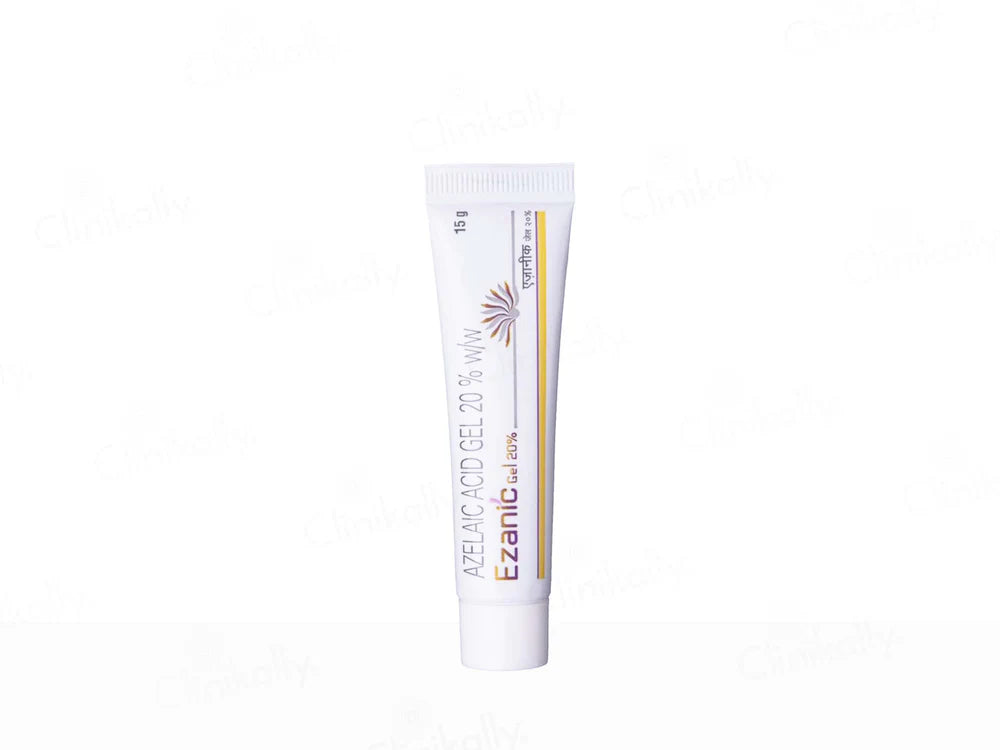 Ezanic 20% Gel containing Azelaic acid, falls under the category of Dicarboxylic acids. This gel is effective in treating common acne (acne vulgaris) by unclogging hair follicles, reducing whiteheads, blackheads, and pimples. Additionally, it addresses mild to moderate papulopustular rosacea, alleviating symptoms like redness, pus-filled bumps, and visible blood vessels on the face. It offers a versatile solution for these skin conditions, promoting clearer and healthier skin.
