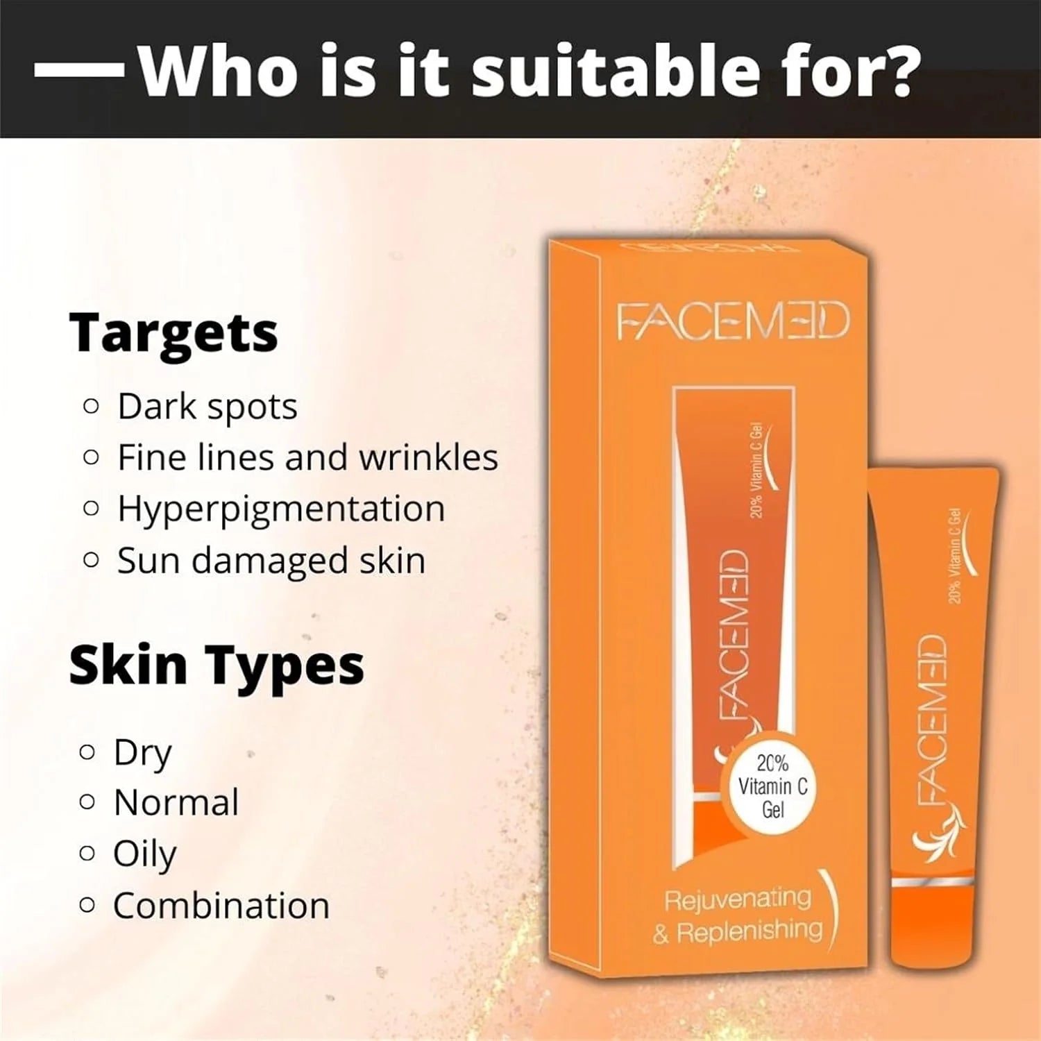 This lightweight gel is formulated with a high concentration of 20% Vitamin C, known for its antioxidant properties that help protect the skin from environmental stressors and promote a brighter complexion. It aims to reduce the appearance of dark spots and uneven skin tone, contributing to a more radiant look. The inclusion of Vitamin E and other hydrating agents supports skin moisture balance, enhancing overall skin texture. Suitable for various skin types, including oily and acne-prone skin, its non-greasy formula absorbs quickly without leaving a sticky residue. Regular use may assist in improving skin firmness and reducing the visibility of fine lines. For optimal results, apply a small amount to cleansed skin, gently massaging until fully absorbed, and follow with a broad-spectrum sunscreen during the day. Always perform a patch test before full application and consult a dermatologist if you have specific skin concerns. Store in a cool, dry place away from direct sunlight to maintain product efficacy.