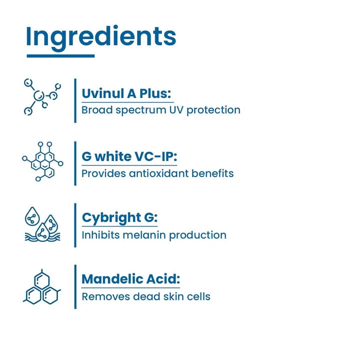This lightweight sunscreen offers broad-spectrum protection against harmful UVA and UVB rays while promoting a radiant, even-toned complexion. Formulated with advanced skin-brightening ingredients, it helps reduce the appearance of dark spots and pigmentation over time. The non-greasy, fast-absorbing texture makes it ideal for daily use, even under makeup. It provides a smooth, matte finish that is suitable for all skin types, including oily and combination skin. With SPF 40, it helps prevent sun damage and premature aging while keeping the skin hydrated and protected. The formula is free from parabens and harsh chemicals, making it gentle on sensitive skin. Daily application supports overall skin health and enhances your natural glow. Use generously on the face and neck before sun exposure for best protection.