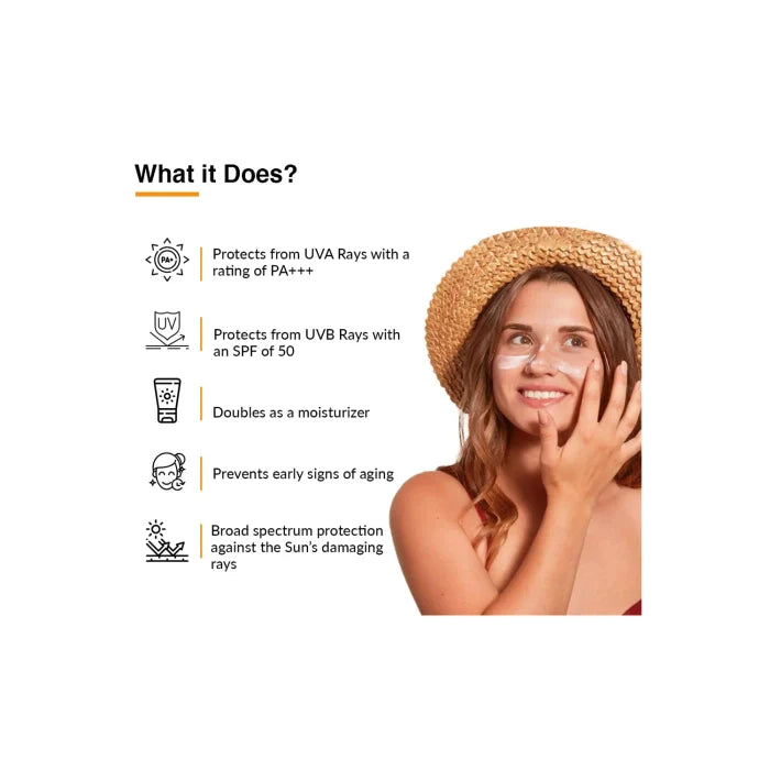 This sunscreen cream offers advanced protection with SPF 50+, shielding the skin from harmful UVA and UVB rays. Its broad-spectrum formula helps prevent sunburn, premature aging, and other sun-related skin damage. The rich, non-greasy cream absorbs quickly, providing long-lasting hydration while keeping the skin soft and smooth. Suitable for all skin types, including sensitive skin, it works gently to protect and maintain a healthy complexion throughout the day. The formula is designed to provide an invisible, matte finish without clogging pores. Free from parabens and artificial fragrances, it is safe for regular use. With consistent application, this sunscreen helps maintain a youthful, even-toned skin appearance, while offering reliable sun protection.