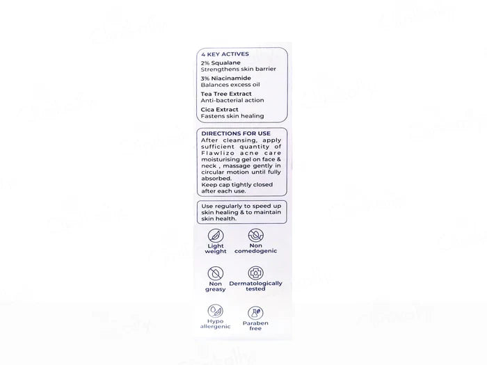 After cleansing, apply sufficient quantity of Flawlizo acne care moisturising gel on face & neck