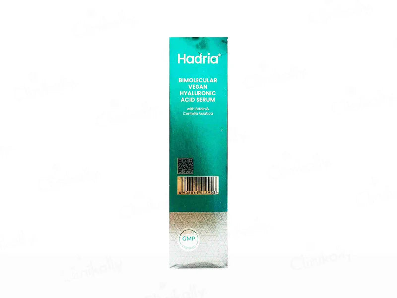Hadria Bimolecular Vegan Hyaluronic Acid Serum is a hydrating and plumping serum formulated to provide intense moisture to the skin. This vegan-friendly formula uses bimolecular hyaluronic acid to penetrate deeply into the skin layers, locking in moisture and improving skin elasticity. It helps reduce the appearance of fine lines, wrinkles, and dehydration, leaving the skin smoother, plumper, and more radiant. Ideal for daily use, it suits all skin types, including sensitive and dry skin.