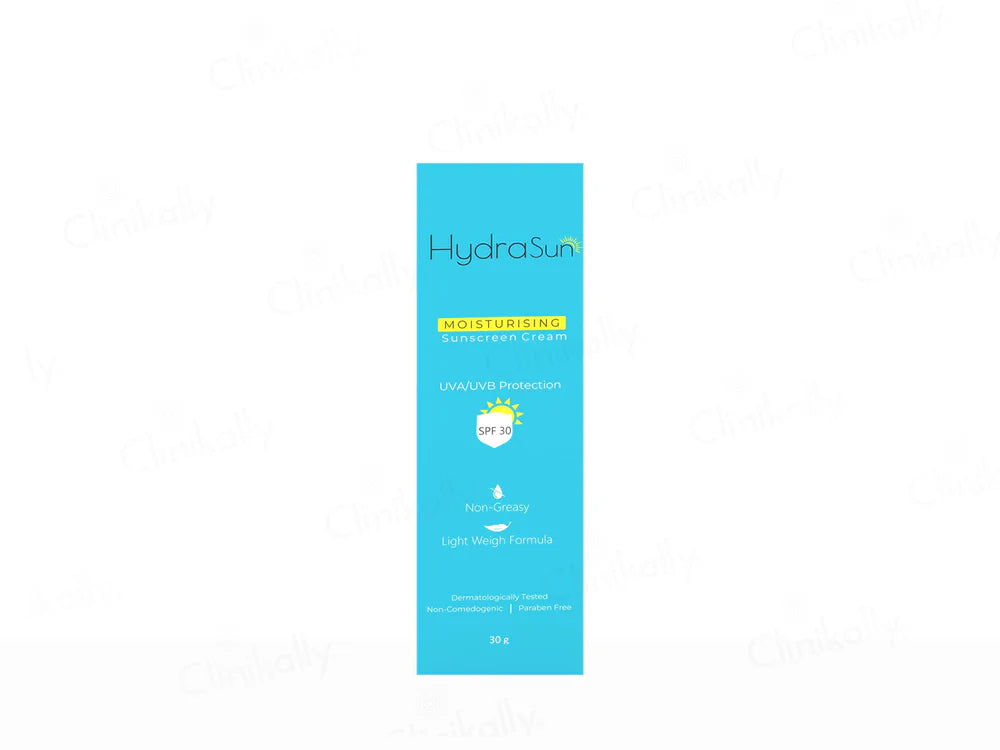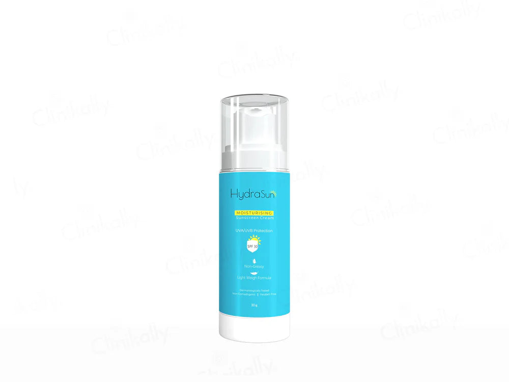 Hydrasun Moisturising Sunscreen Cream SPF 30 offers effective sun protection while keeping your skin hydrated and nourished. Its broad-spectrum formula shields against harmful UVA and UVB rays, preventing sunburn and skin damage. Enriched with moisturizing ingredients, this sunscreen cream helps maintain the skin's moisture balance and sin barrier, leaving it soft, supple and smooth. Suitable for all skin types, it is perfect for daily use to protect and care for your skin under the sun.