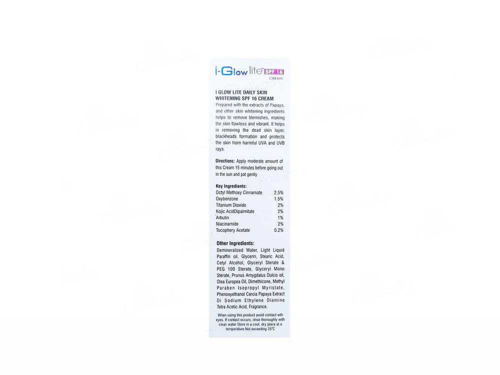 Reveal a brighter, flawless complexion with I-Glow Lite Daily Skin Whitening Cream SPF 16. This dermatologist-recommended UVAB cream combines papaya extract, kojic acid, arbutin, and niacinamide to target dark spots, hyperpigmentation, and uneven skin tone. Its lightweight, non-greasy formula hydrates, smooths, and protects against harmful UVA/UVB rays, while antioxidants fight free radical damage. Ideal for daily use, it visibly reduces blemishes, blackheads, and signs of aging, leaving your skin radiant, even-toned, and youthfully refreshed.