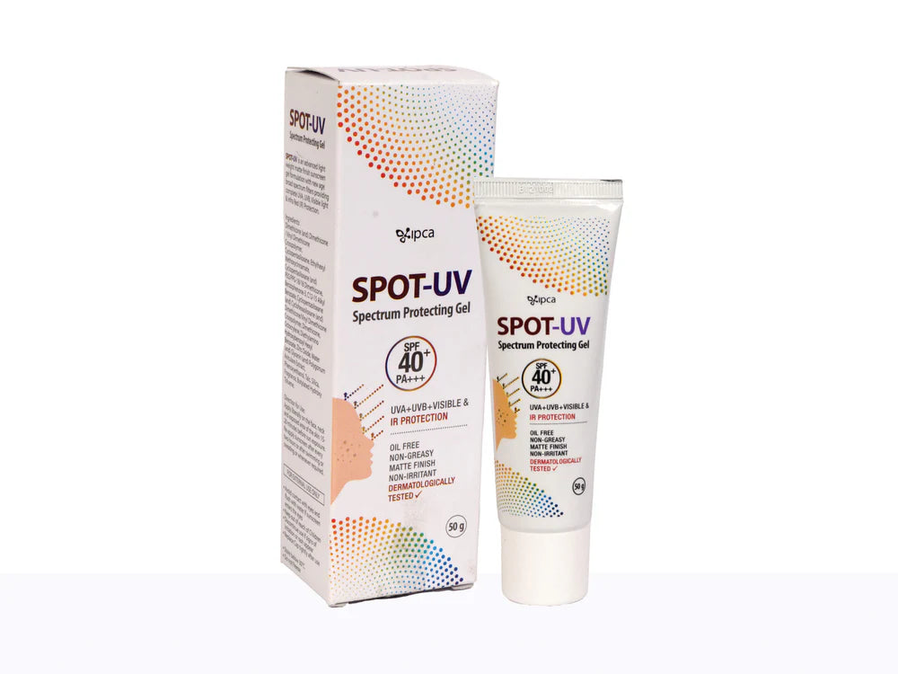 IPCA Spot-UV Spectrum Protecting Gel SPF 40+/PA+++ offers broad-spectrum protection against UVA/UVB rays, combining powerful chemical and physical sunscreen agents like zinc oxide. Its advanced formula absorbs into the skin, converting harmful rays and reflecting others. Providing at least 2-3 hours of protection, it shields your skin from sun damage, ensuring a safe and effective defense against harmful UV exposure.