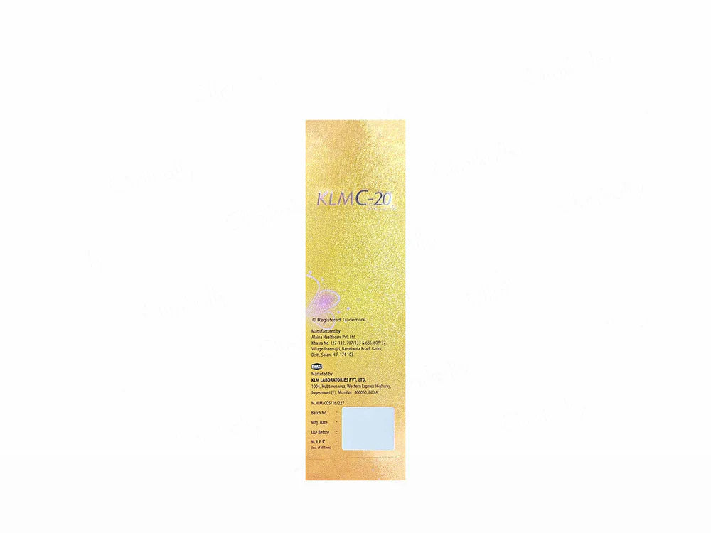 KLMC-20 Vitamin C Serum is a potent antioxidant formula designed to brighten and rejuvenate the skin. Enriched with 20% pure Vitamin C, it effectively reduces dark spots, evens out skin tone, and promotes collagen production for a firmer, more youthful appearance. This lightweight, fast-absorbing serum also protects the skin from environmental damage and enhances overall radiance. Suitable for all skin types, it is ideal for daily use to achieve a glowing, healthy complexion.