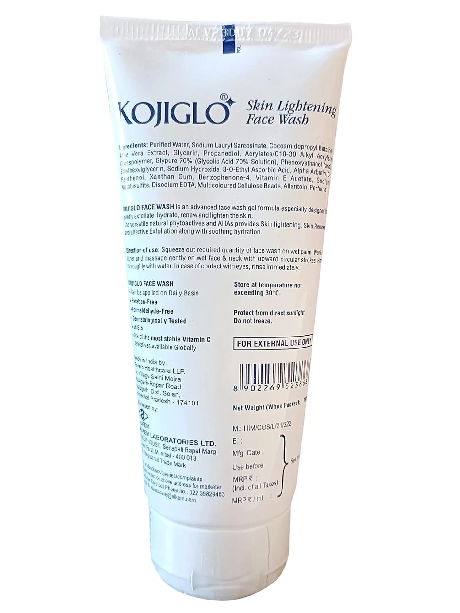 This gentle face wash is formulated to cleanse and brighten the skin, promoting a more even complexion. Enriched with ingredients like kojic acid, glycolic acid, alpha arbutin, and niacinamide, it helps reduce the appearance of dark spots and hyperpigmentation by inhibiting melanin production. The inclusion of aloe vera extract and glycerin provides hydration, leaving the skin feeling soft and refreshed. Its creamy, foaming texture effectively removes impurities, excess oil, and makeup without stripping the skin of its natural moisture. Free from sulphates, parabens, and formaldehyde, this face wash is suitable for all skin types, including sensitive skin. Regular use may lead to improved skin clarity and brightness over time. For optimal results, apply a small amount to wet skin, gently massage in circular motions, and rinse thoroughly. Consistent application, along with sun protection, can enhance the benefits and maintain skin health
