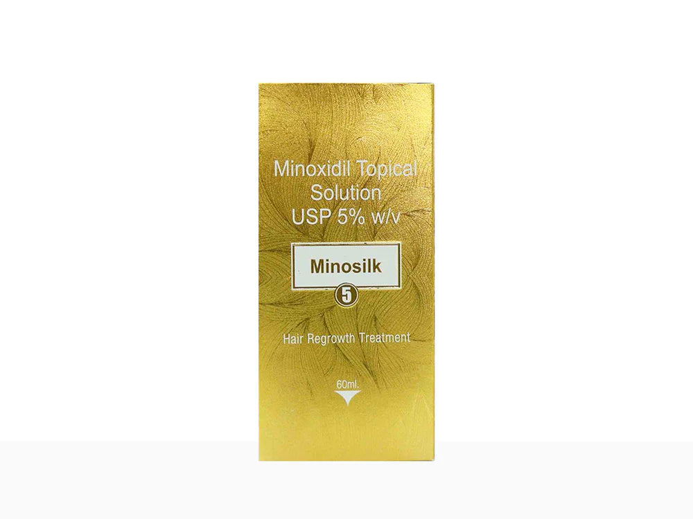 Minosilk 5 Topical Solution is a medication containing the active ingredient Minoxidil. It is commonly used to treat hair loss, particularly in cases of male pattern baldness and female pattern hair loss. Applied directly to the scalp, it promotes hair growth by stimulating hair follicles and improving blood flow. It is available as an over-the-counter treatment for hair regrowth.
