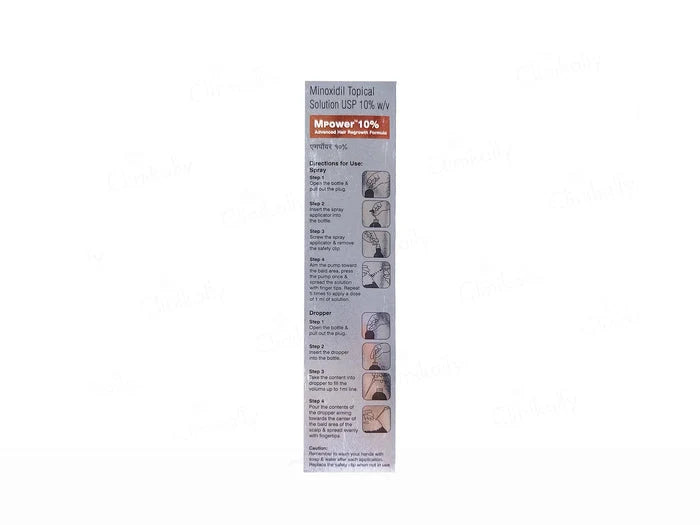 Mpower 10% Solution is a topical medication formulated to address hereditary hair loss in men, specifically targeting androgenetic alopecia. Its active ingredient, minoxidil, functions as a vasodilator, enhancing blood flow to hair follicles on the scalp. This increased circulation delivers essential nutrients and oxygen, promoting hair follicle health and stimulating hair regrowth. The solution is most effective for hair thinning or baldness at the crown and top of the scalp, though results may vary for receding hairlines. Visible improvements typically require consistent application over several months. It's important to note that discontinuation of the solution may lead to the reversal of benefits within a few months. Common side effects include scalp irritation, itching, and unwanted facial hair growth. For optimal results, apply the solution as directed by a healthcare professional, ensuring the scalp is clean and dry before use. Avoid contact with eyes, nose, or mouth, and wash hands thoroughly after application. Consult a doctor before starting treatment, especially if you have underlying health conditions or are using other topical scalp treatments. This product is not recommended for women or individuals under 18 years of age