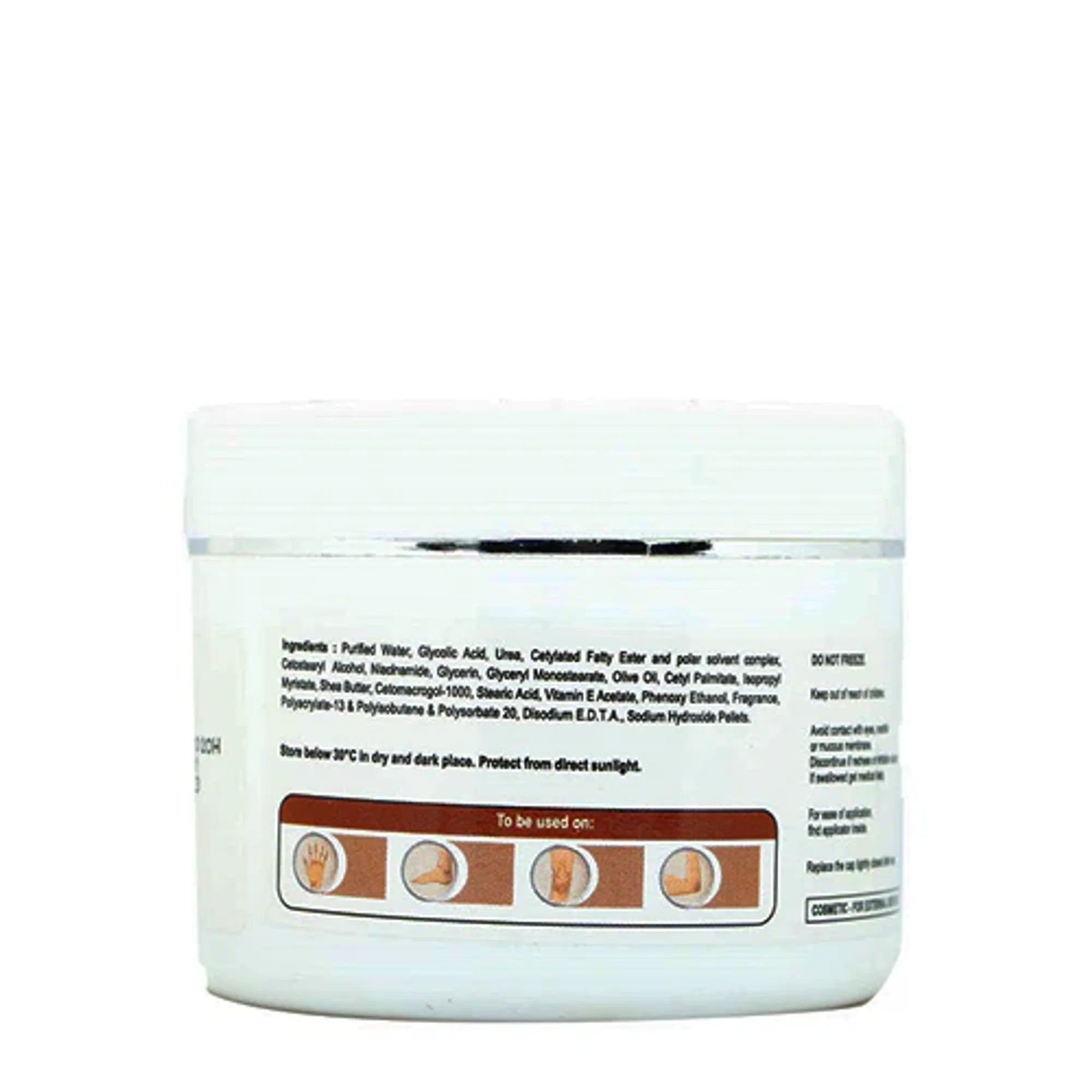 This intensive moisturizing cream is formulated to hydrate and soothe dry, rough, and scaly skin. It combines ingredients like urea and glycolic acid to gently exfoliate dead skin cells, promoting smoother skin texture. The inclusion of shea butter, olive oil, and glycerin helps to nourish and restore the skin's natural moisture barrier, enhancing softness and elasticity. Niacinamide and vitamin E contribute to improving skin tone and protecting against environmental stressors. Suitable for all skin types, this cream is particularly beneficial for areas prone to dryness, such as hands, feet, elbows, and knees. Its non-greasy formula absorbs quickly, making it ideal for daily use. For optimal results, apply to clean, dry skin and massage gently until fully absorbed. Consistent use may lead to noticeable improvements in skin hydration and texture over time