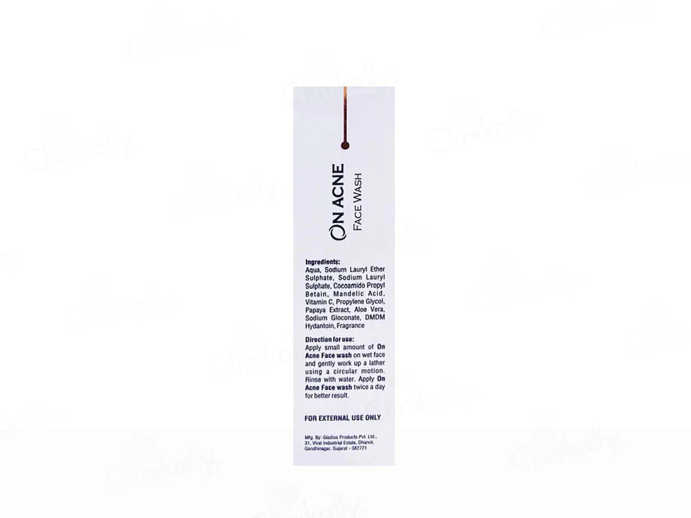 ON Acne Face Wash is a specialized cleanser formulated to combat acne and maintain clear skin. It effectively removes excess oil, dirt, and impurities that can clog pores and lead to breakouts. The face wash contains active ingredients such as salicylic acid, known for its acne-fighting properties, and tea tree oil, which has natural antibacterial effects. Regular use helps prevent new acne formation and promotes a healthier complexion.