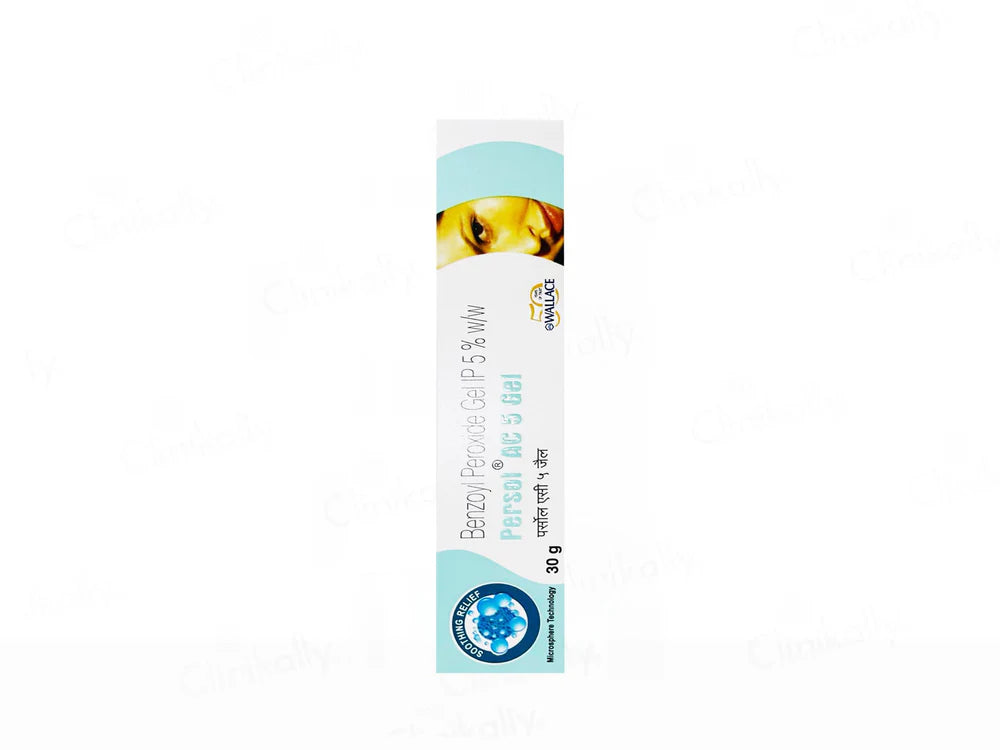 Persol AC 5 Gel is a topical anti-acne formulation containing Benzoyl Peroxide 5%, clinically proven to treat and prevent mild to moderate acne. This gel-based formula works by penetrating the pores to eliminate acne-causing bacteria, reduce excess oil, and exfoliate dead skin cells. It helps in reducing inflammation and prevents the formation of new pimples and blackheads. The lightweight, non-comedogenic gel is ideal for acne-prone and oily skin types, promoting visibly clearer and healthier skin with regular use.