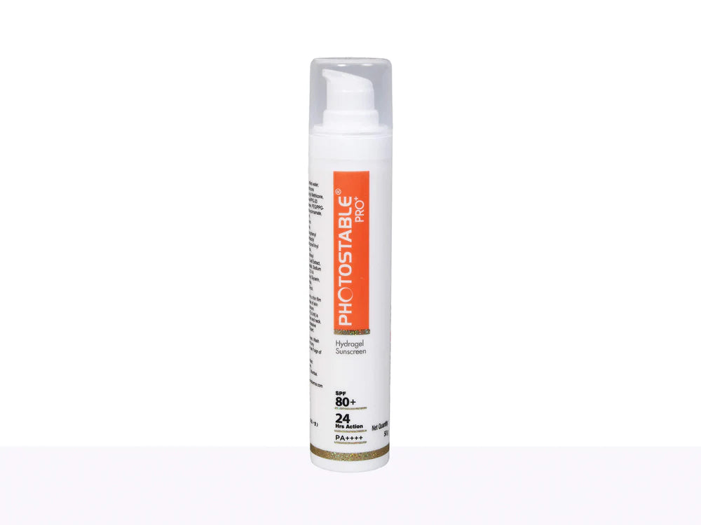 Photostable Pro+ Hydragel Sunscreen SPF 80+ PA++++ is a water and sweat-resistant sunscreen designed to provide comprehensive photo-protection against harmful UV, visible, and IR light. It also helps manage premature aging by shielding the skin from environmental pollution. The sunscreen contains organic molecules, grape leaf extract, sodium hyaluronate, and oxothiazolidine as active ingredients that act as UV filters, forming a non-occlusive sun-protecting film that behaves like a second skin.