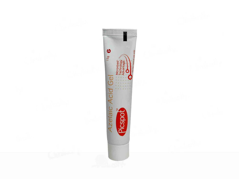 Picspot 15% Gel, containing Azelaic acid, falls under the category of Dicarboxylic acids. This cream is effective in treating common acne (acne vulgaris) by unclogging hair follicles, reducing whiteheads, blackheads, and pimples. Additionally, it addresses mild to moderate papulopustular rosacea, alleviating symptoms like redness, pus-filled bumps, and visible blood vessels on the face. It offers a versatile solution for these skin conditions, promoting clearer and healthier skin.