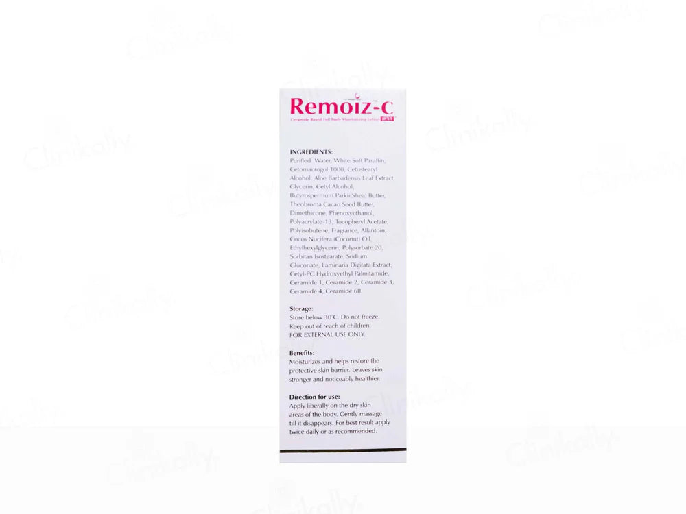 Remoiz-C Ceramide Moisturizing Lotion is formulated to provide deep hydration and restore the skin's natural barrier. Enriched with ceramides, it helps to lock in moisture, soothe dryness, and improve skin texture. This lotion is lightweight, non-greasy, and quickly absorbed, making it ideal for daily use on all skin types, including sensitive skin. Regular use leaves the skin feeling soft, smooth, and well-nourished.