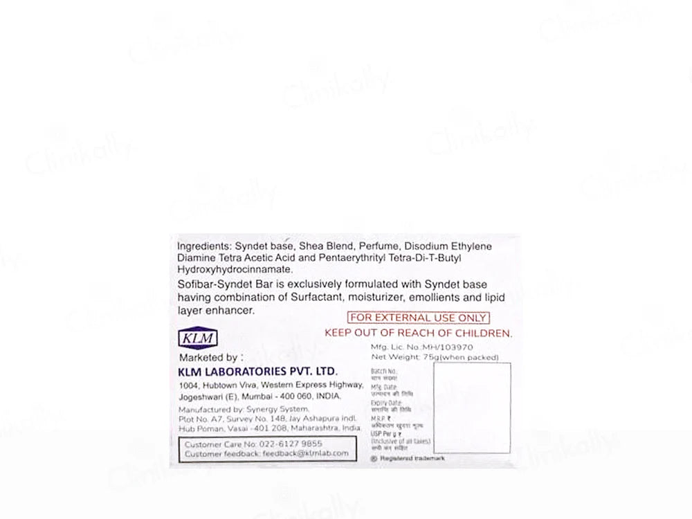 Sofibar pH 5.5 Syndet Bar is a mild and gentle baby soap designed to cleanse delicate baby skin without causing dryness or irritation. With a balanced pH of 5.5, it helps maintain the natural protective barrier of the skin. Enriched with moisturizing agents and soothing ingredients, it leaves baby's skin feeling clean, soft, and nourished after each use, making bath time a pleasant experience.
