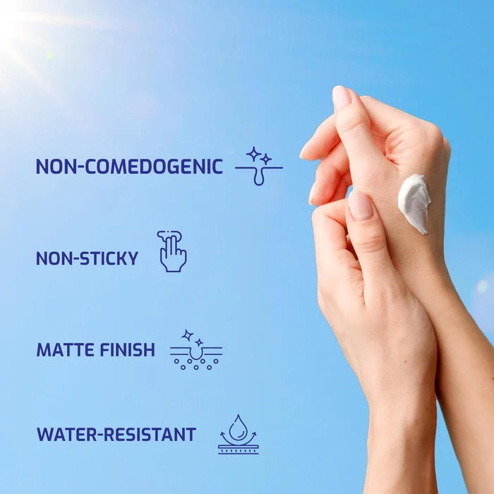 This sunscreen lotion offers high-level SPF 50 PA++++ protection to guard against harmful UVA and UVB rays. Its non-sticky, lightweight formula absorbs quickly into the skin without leaving a white cast, making it ideal for everyday use. Designed to be water-resistant and sweat-resistant, it provides long-lasting protection during outdoor activities. Suitable for all skin types, including sensitive and oily skin, it helps prevent sunburn, tanning, and premature aging. The formula is enriched with skin-friendly ingredients that soothe and hydrate while offering broad-spectrum defense. Free from parabens and harsh chemicals, it is gentle enough for regular use. Apply generously before sun exposure and reapply as needed for continued protection.