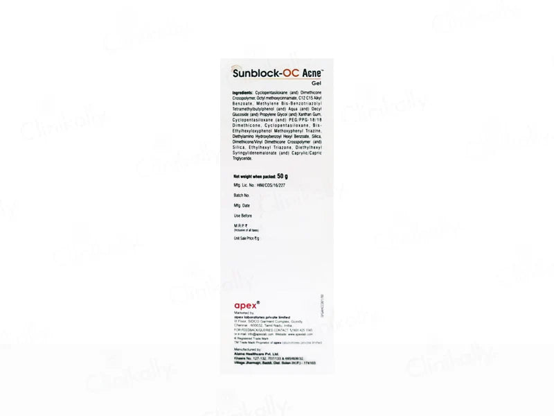 Sunblock-OC Acne Matte Sunscreen Gel SPF 55+ PA+++ is a specialized sunscreen gel designed to protect acne-prone skin from harmful UV rays while maintaining a matte finish. Its non-comedogenic formula ensures it doesn't clog pores, making it ideal for those with acne or oily skin. The sunscreen gel gets absorbed quickly, leaving no oily or greasy residue, and is dermatologically tested for safety and efficacy.