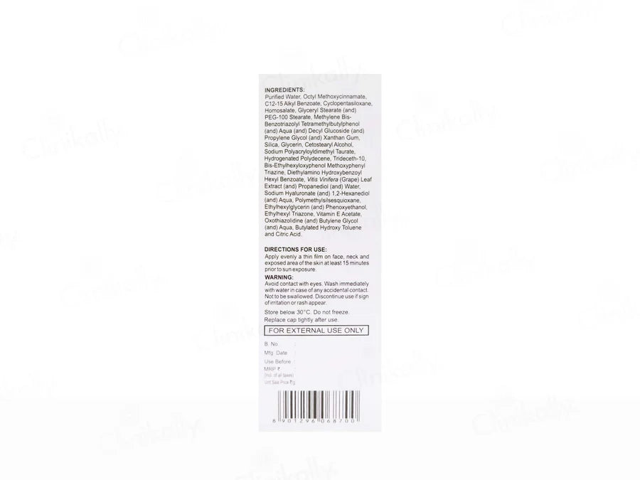 Apply evenly on face, neck, and exposed areas 15 minutes before sun exposure.