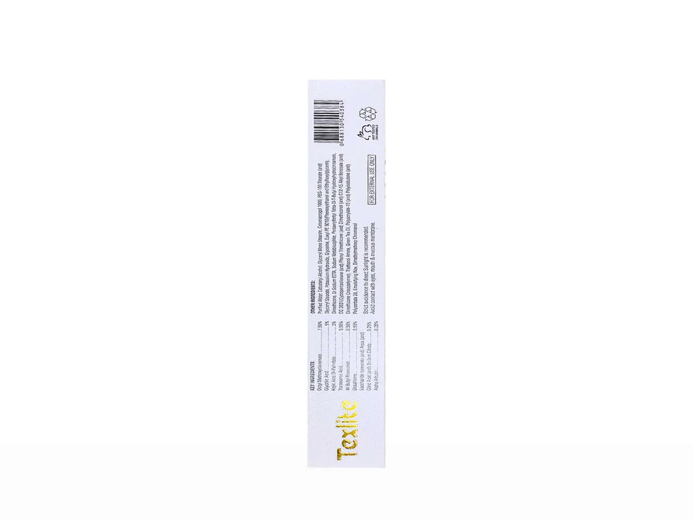 Texlite Cream is a scientifically crafted skin-brightening formula designed to reduce pigmentation, uneven tone, and dark spots. Powered by active ingredients like glycolic acid, kojic acid dipalmitate, arbutin, and niacinamide, it works synergistically to exfoliate, lighten hyperpigmented areas, and enhance skin clarity. Suitable for all skin types, Texlite Cream is ideal for treating melasma, sun damage, and dullness. Its non-greasy base makes it perfect for daily use, helping reveal visibly brighter, smoother, and more even-toned skin with continued application.