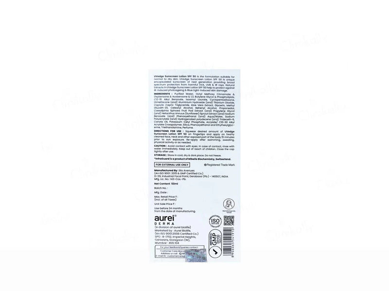 UVedge Sunscreen Lotion SPF 50 PA+++ provides high-level protection against harmful Infrared, Blue Light, UVA and UVB rays. Its broad-spectrum formula helps prevent sunburn, dark spots, and premature aging, and also protects gaainst damage caused bu pollution. The lightweight, non-greasy lotion absorbs quickly into the skin, leaving a smooth, matte finish. Ideal for daily use, it is suitable for all skin types and offers long-lasting protection, making it perfect for outdoor activities and everyday wear.