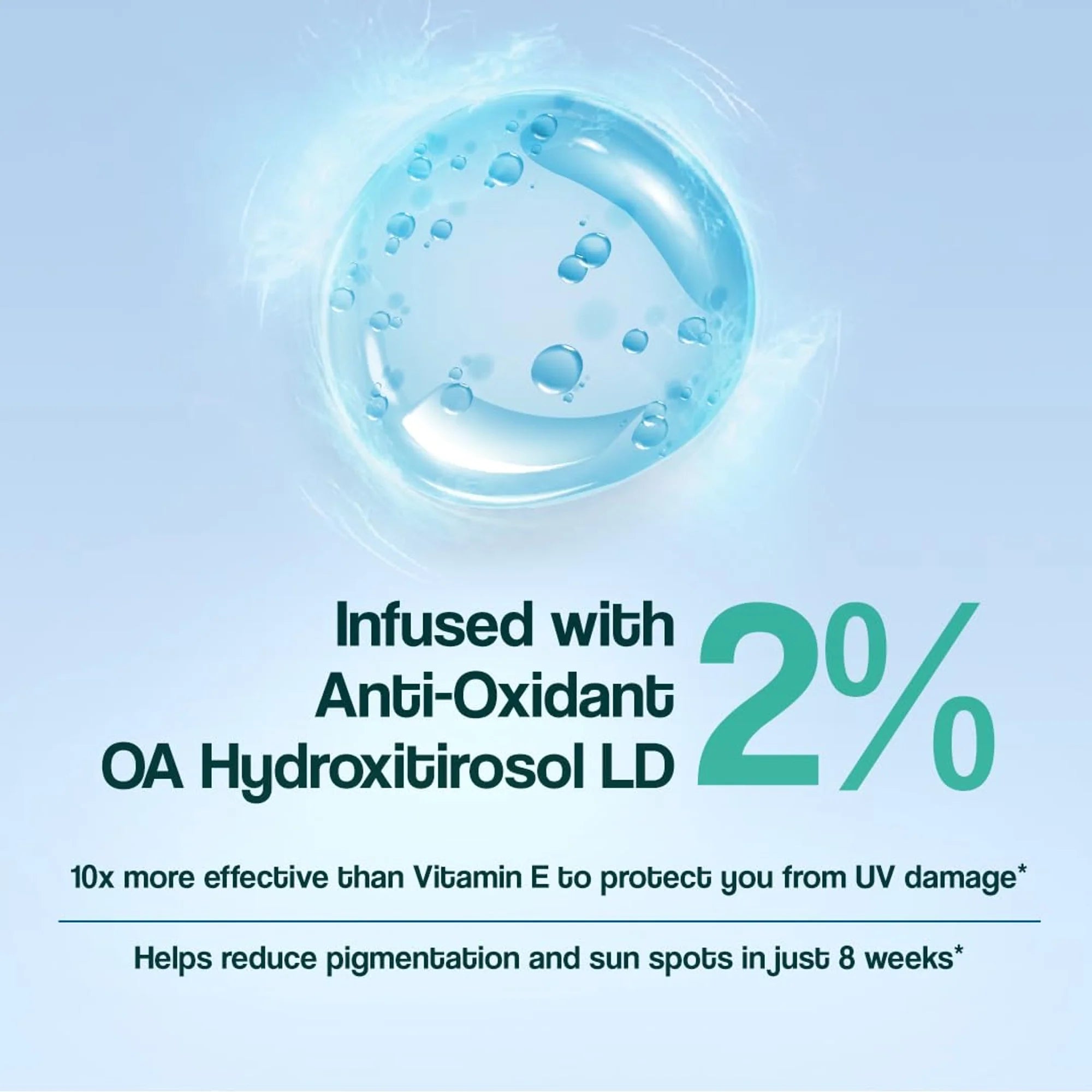 This water-based sunscreen offers broad-spectrum protection with SPF 65+ and PA++++, effectively shielding the skin from harmful UVA and UVB rays. Its lightweight, non-greasy formula absorbs quickly, leaving no white cast, making it suitable for daily use under makeup. Enriched with hydrating and soothing ingredients, it helps maintain skin's suppleness and provides up to 8 hours of hydration. The inclusion of antioxidants like OA Hidroxitirosol LD 2% aids in reducing pigmentation and dark spots over time. Suitable for all skin types, including oily and acne-prone skin, it is dermatologically tested and free from parabens and mineral oils. Regular application can help improve skin texture and tone, leading to a brighter and more radiant appearance. For optimal results, apply generously to clean, dry skin 15–20 minutes before sun exposure and reapply every 2–3 hours or after swimming or sweating. Always follow the recommended usage instructions and consult a healthcare professional if needed.